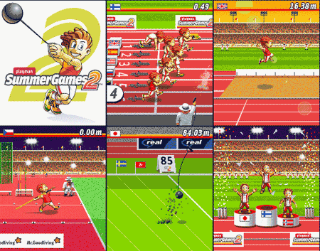 Letní olympiáda na vašem mobilu!! Zkuste své umění ve čtyřech disciplínách na letním stadionu. Jsou to: běh, hod kladivem, trojskok a hod oštěpem. Hra, která vám zaručí hodiny zábavy i s kamarády, na jednom mobilu může totiž hrát až 6 hráčů. Starší ale nesmrtelná hra.